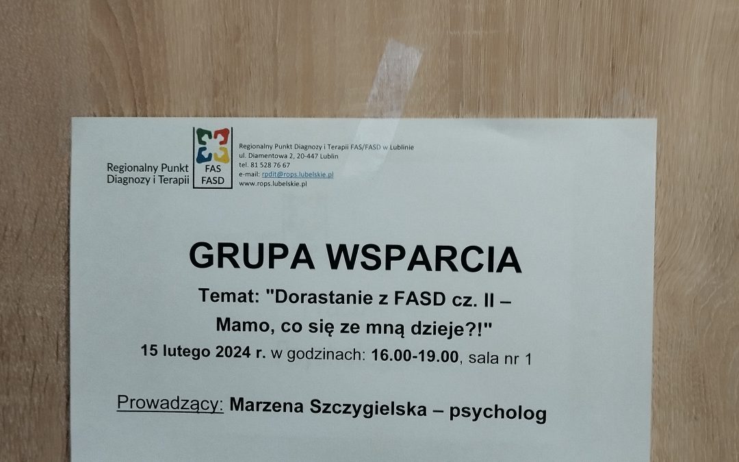 Za nami kolejne spotkanie grupy wsparcia dla rodziców i opiekunów dzieci z diagnozą FAS/FASD pn. Dorastanie z FASD, cz. 2: Mamo, co się ze mną dzieje?! Spotkanie prowadziła Pani psycholog Marzena Szczygielska, a poruszyliśmy na nim wiele ciekawych tematów związanych z...