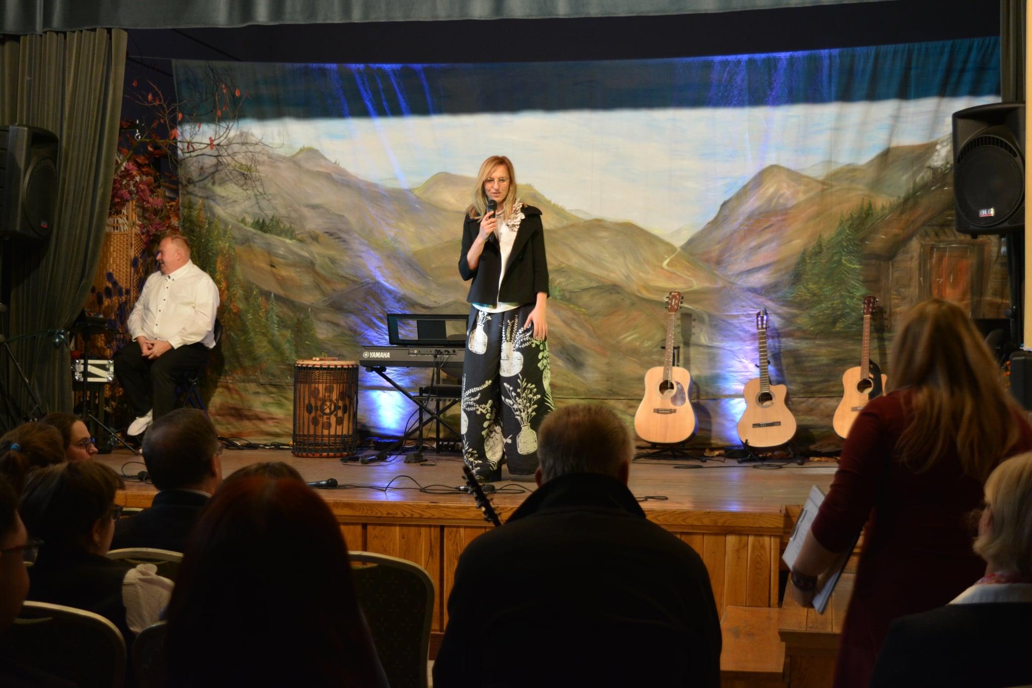 Tradycyjnie już od kilku lat Festiwal Jesienne Spotkania Bardów został poprowadzony przez panią Justynę Kosowską, specjalistę ds. rehabilitacji społecznej w Warsztatach Terapii Zajęciowej „Misericordia” w Lublinie. Swoim ogromnym ciepłem, serdecznością i profesjonalizmem stworzyła wyjątkową atmosferę, w której każdy uczestnik czuł się ważny i doceniony. Pani Justyna Kosowska z wielkim taktem i zaangażowaniem wprowadzała publiczność w kolejne punkty programu, z uśmiechem zapowiadając występy bardów- uczestników i gości. Jej naturalność i pogoda ducha sprawiły, że wydarzenie przebiegało w duchu radości, wzajemnego szacunku i wspólnego świętowania twórczości. Dzięki jej ciepłemu słowu i uważności Festiwal zyskał nie tylko profesjonalną oprawę, ale także serdeczny, rodzinny charakter, tak bliski idei Warsztatów Terapii Zajęciowej „Misericordia”. Prowadzenie pani Justyny Kosowskiej spotkało się z uznaniem i wdzięcznością zarówno uczestników, jak i publiczności, stając się pięknym dopełnieniem tego niezwykłego wydarzenia.