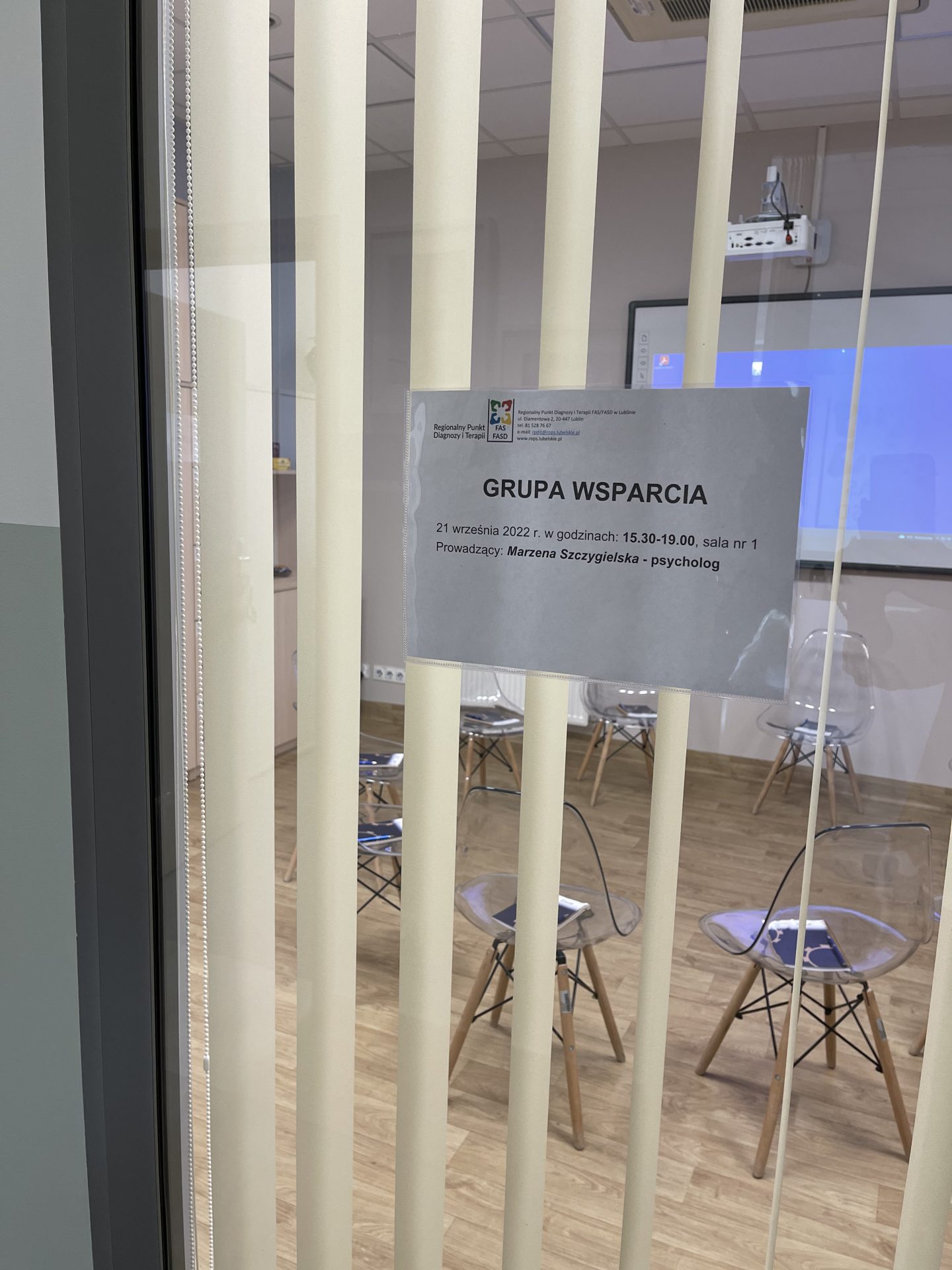 W dniu 21 września 2022 r. w Regionalnym Punkcie Diagnozy i Terapii FAS/FASD w Lublinie odbyło się pierwsze spotkanie Grupy wsparcia, skierowane do rodziców/opiekunów dzieci z FAS/FASD. Grupa wsparcia jest formą pomocy psychologicznej. Zwykle w grupach wsparcia uczestniczą osoby, które łączą podobne problemy i trudności. Grupy takie mogą mieć charakter zarówno formalny (organizowane przez specjalistyczne instytucje i prowadzone przez jedną lub dwie profesjonalnie przygotowane osoby), jak i samopomocowy (gdy tworzone są przez samych jej członków). Grupy takie mogą mieć także charakter otwarty (gdy w każdym momencie mogą dołączyć do nich nowi członkowie) lub zamknięty (gdy nowi członkowie nie mogą dołączać do spotkań po ich rozpoczęciu). Udział w grupie wsparcia polega na dzieleniu się własnymi doświadczeniami z innymi jej członkami, słuchaniu, nawiązywaniu kontaktu, dzieleniu się pożytecznymi informacjami, udzielaniu sobie wzajemnie wsparcia emocjonalnego.
