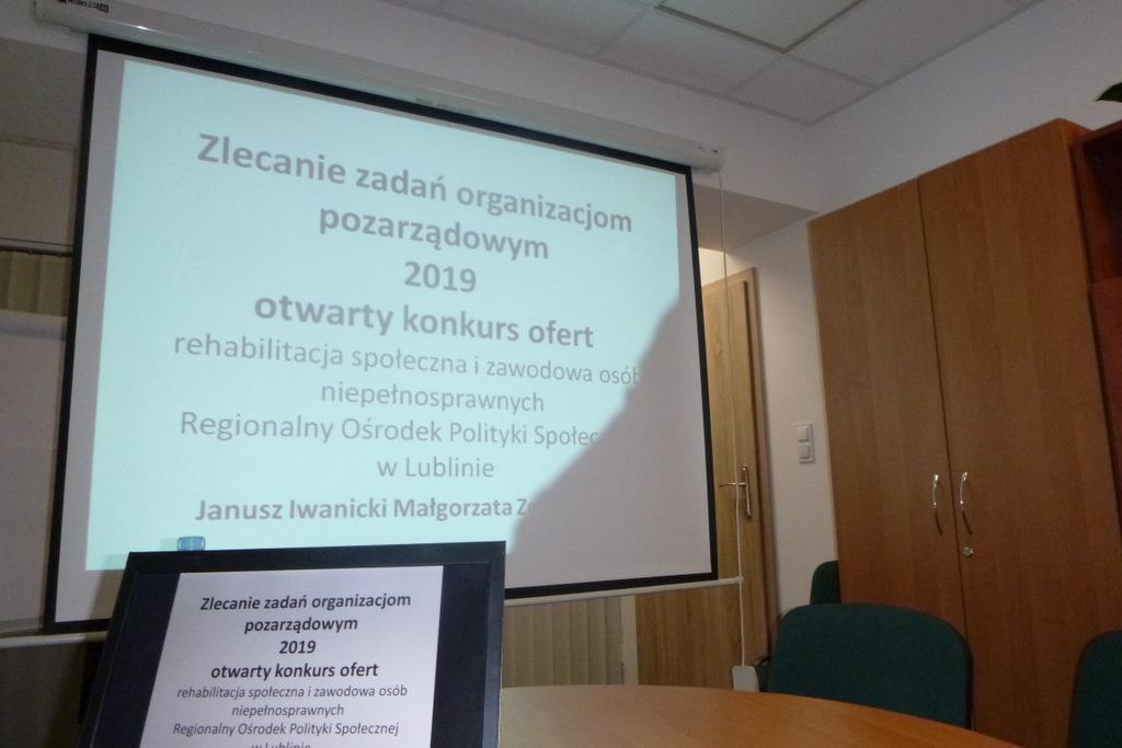 Uprzejmie informujemy, że w dniu 15 marca 2019 r. w siedzibie Regionalnego Ośrodka Polityki Społecznej w Lublinie odbyło się spotkanie z przedstawicielami fundacji i organizacji pozarządowych wspierających osoby niepełnosprawne. Poświęcono je realizacji zadań zleconych z zakresu rehabilitacji zawodowej i społecznej osób niepełnosprawnych w 2019 r. Omówiono zasady i warunki otwartego konkursu ofert dla organizacji określone w ogłoszeniu konkursowym. Udzielono szczegółowych informacji o formalnych i merytorycznych kryteriach oceny ofert składanych w ramach konkursu. Przedstawiono nowy wzór oferty, obowiązujący Oferentów od 1 marca 2019 r. Pracownicy ROPS odpowiedzieli na pytania gości. Spotkanie było także okazją do zaprezentowania projektu „Wojewódzkiego programu rozwoju zróżnicowanych form wspieranego i wspomaganego zatrudnienia oraz przedsiębiorczości społecznej dostosowanej do potrzeb osób niepełnosprawnych, w tym z zaburzeniami psychicznymi”, który będzie wdrażany przez samorząd województwa lubelskiego od 2019 r.