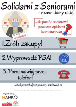 W trosce o zdrowie i bezpieczeństwo seniorów Stowarzyszenie Manko podjęło działania w ramach kampanii „Solidarni z Seniorami – razem damy radę!”, której głównymi celami są: