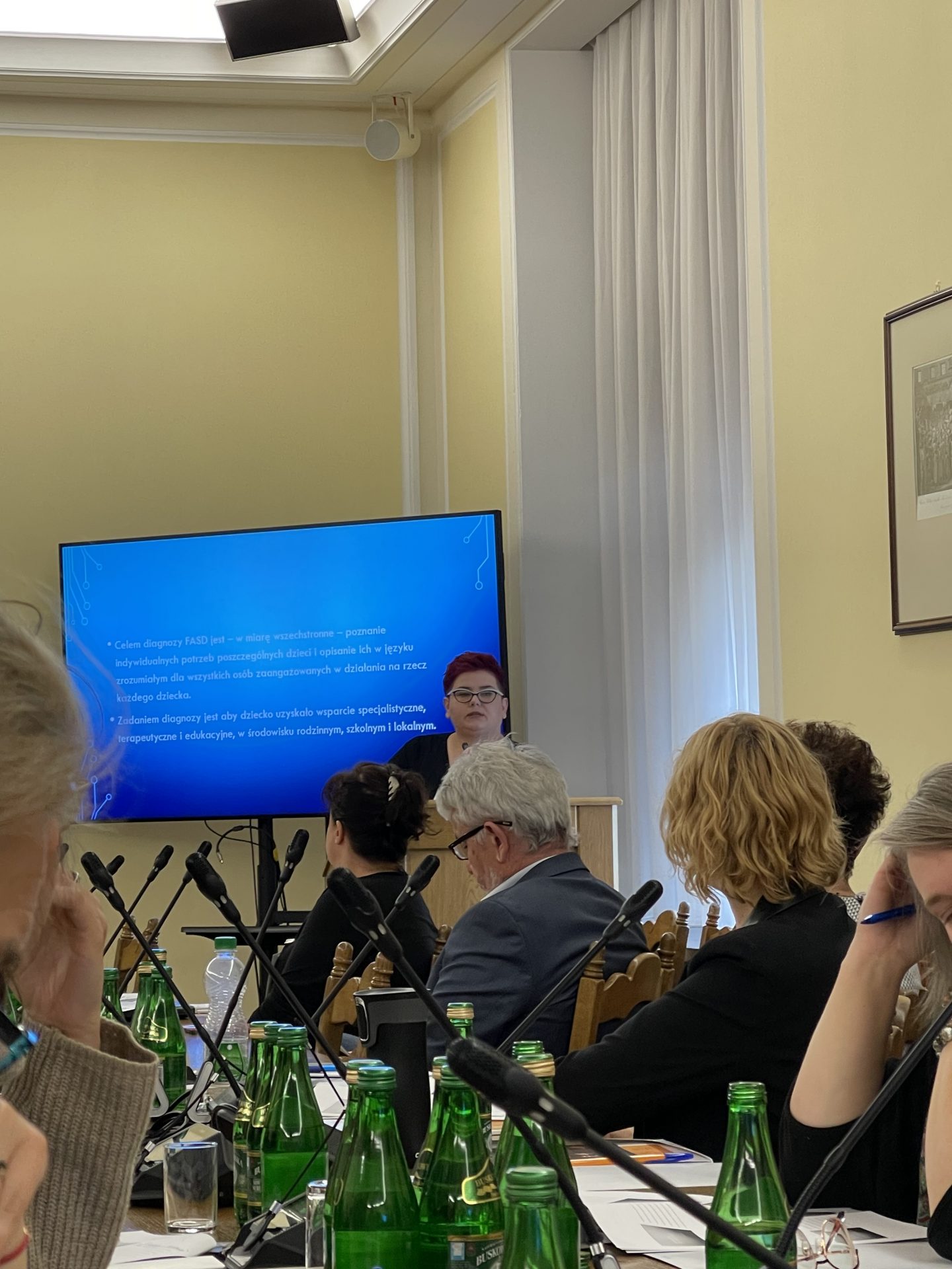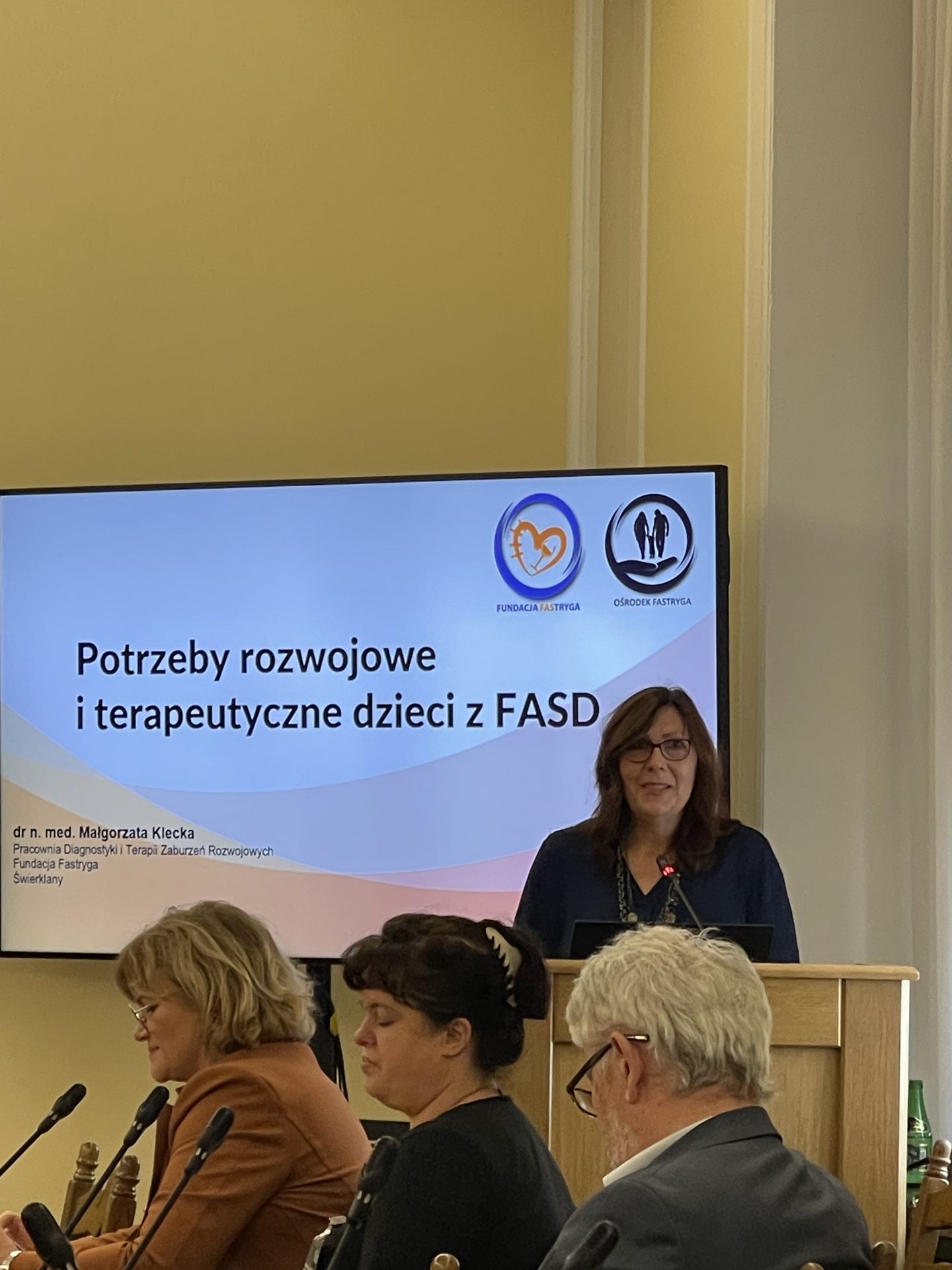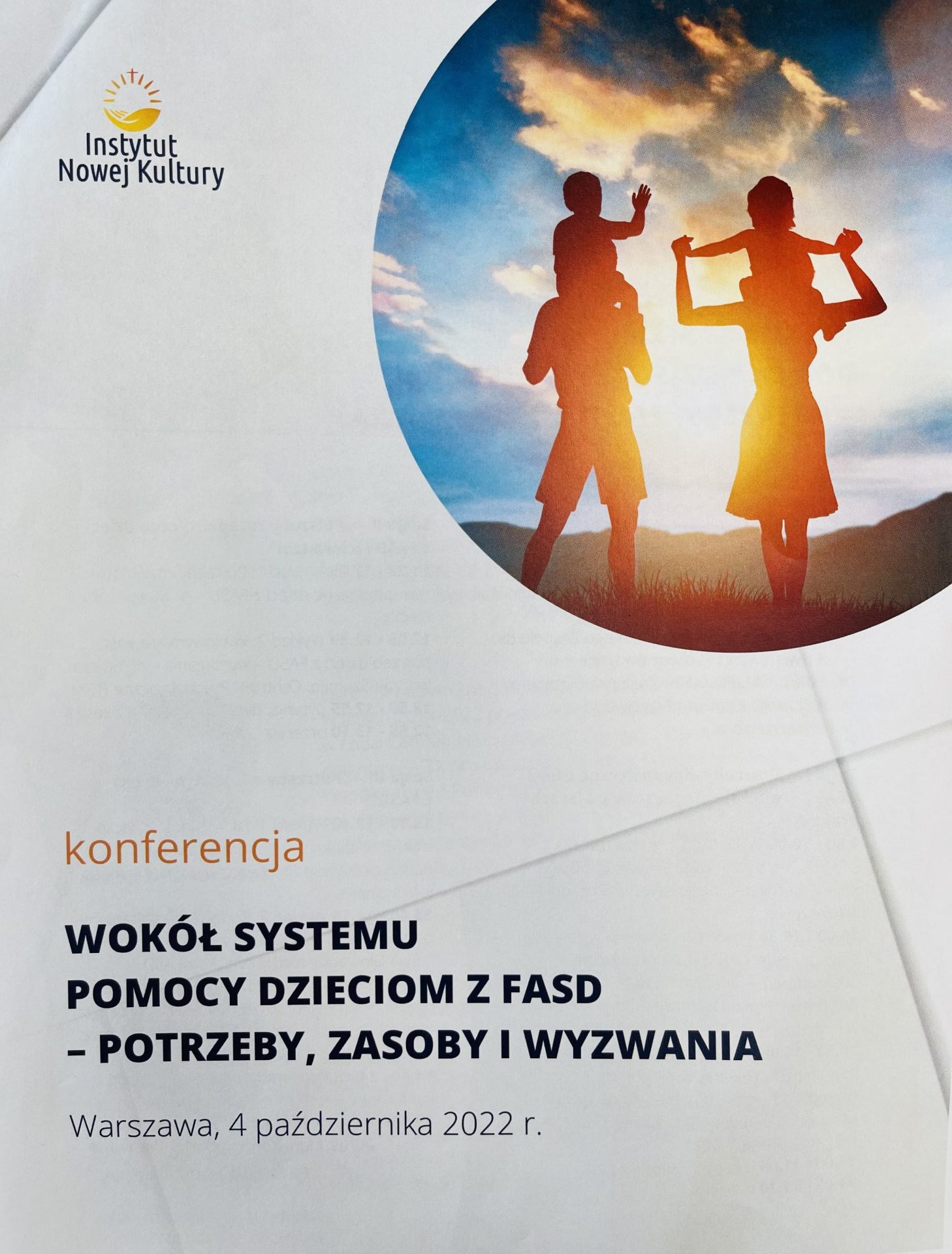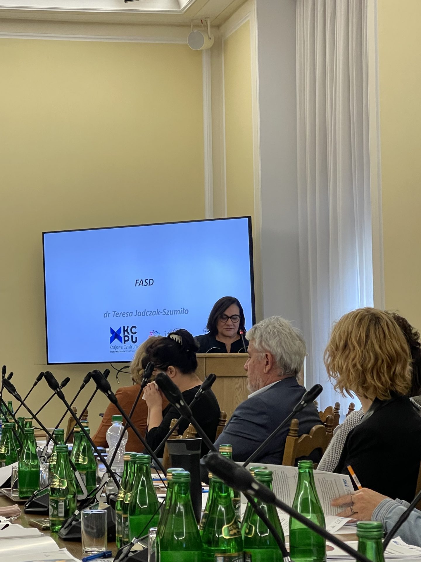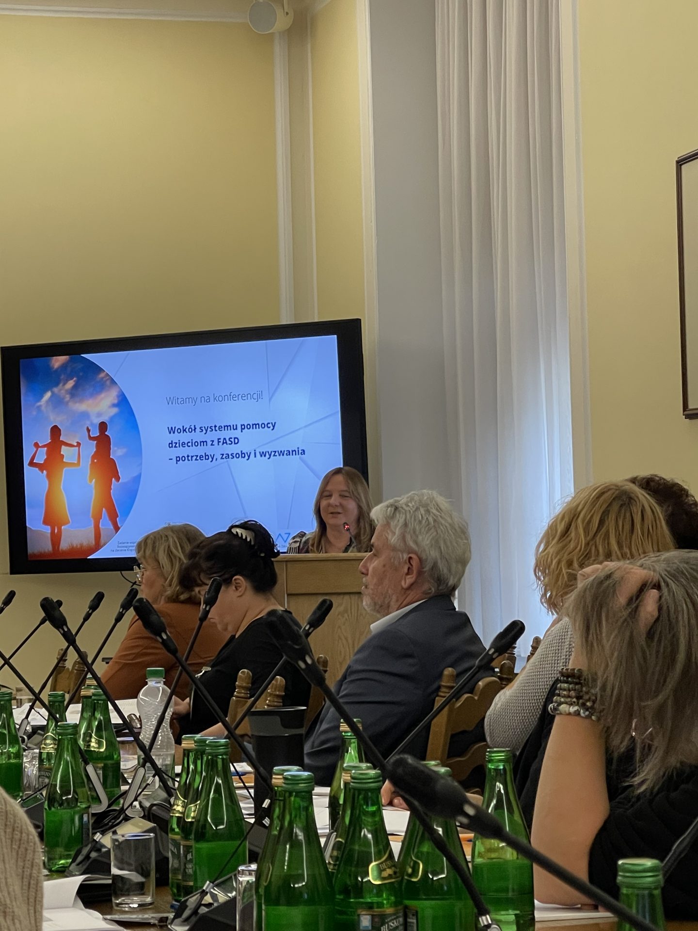 W dniu 4 października 2022 r. w Sejmie Rzeczypospolitej Polskiej odbyła się konferencja pt. „Wokół systemu pomocy dzieciom z FASD – potrzeby, zasoby i wyzwania” organizowana przez Instytut Nowej Kultury. Konferencję rozpoczął Pan Henryk Kowalczyk – Wicepremier, Minister Rolnictwa i Rozwoju Wsi. Po wstępnym przywitaniu głos zabrali: Pani Teresa Jadczak-Szumiło z Centrum Psychologicznego ITEM w Żywcu oraz Pani Jolanta Terlikowska z Krajowego Centrum Przeciwdziałania Uzależnieniom, specjalista FASD przedstawiając po krótce historie prac wokół tematu FASD.