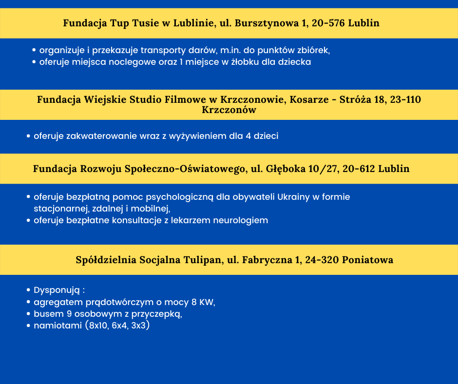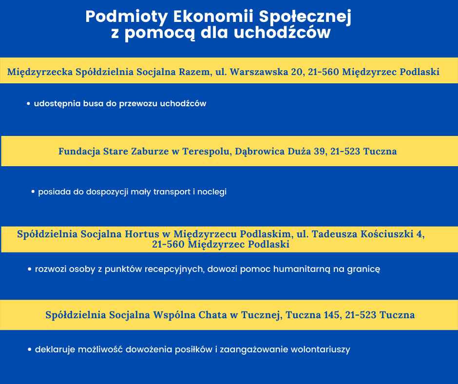 Lubelskie PES włączają się w pomoc dla uchodźców mar 16, 2022 | Aktualności, Bez kategorii, Ekonomia społeczna, INFORMACJE O POMOCY DLA UCHODŹCÓW Z UKRAINY