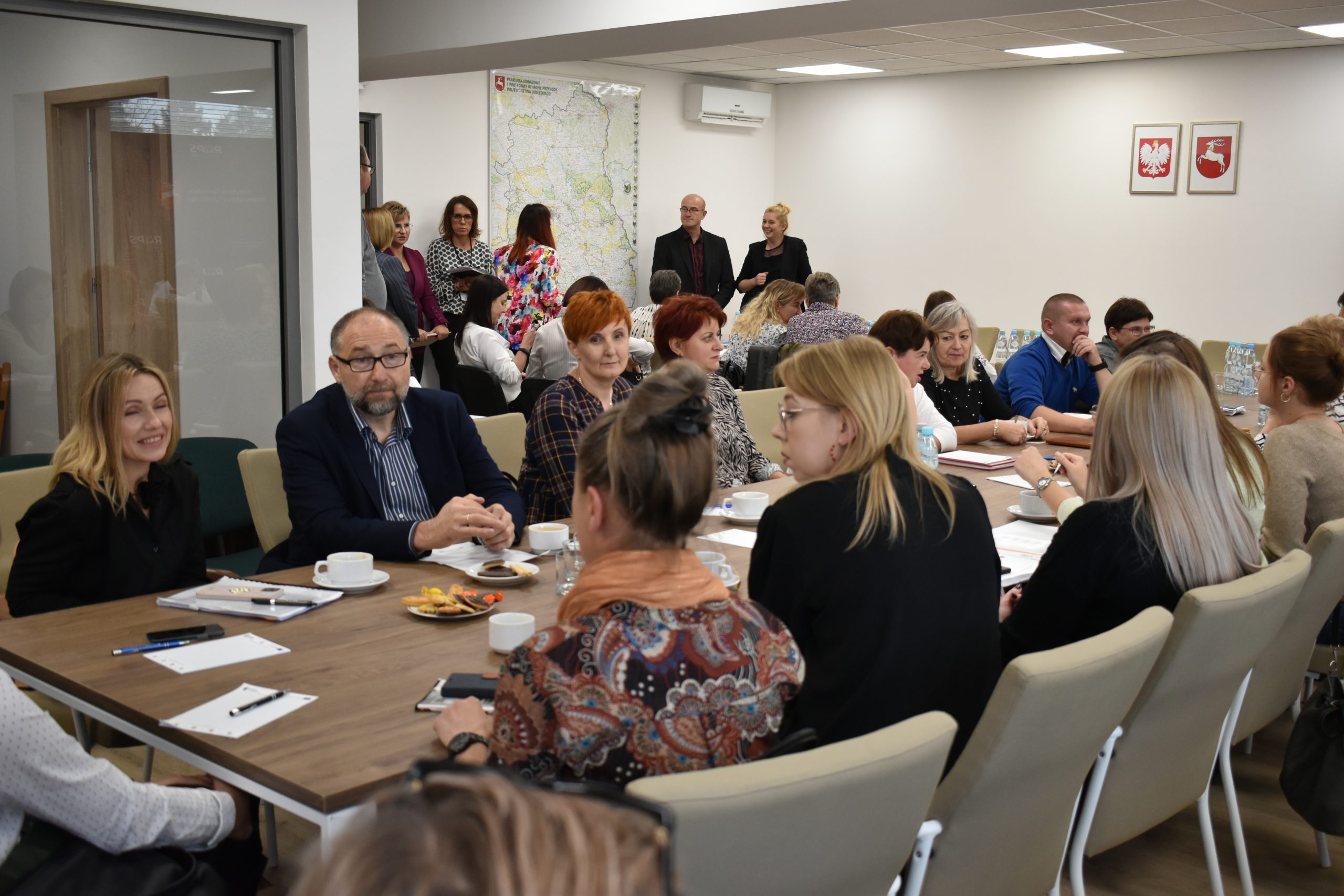 Dnia 23 października 2023r. w siedzibie Regionalnego Ośrodka Polityki Społecznej w Lublinie przy ul. Diamentowej 2 odbyło się pierwsze spotkanie robocze w ramach projektu „Polityka Senioralna EFS+” realizowanego w ramach Programu Fundusze Europejskie dla Lubelskiego 2021-2027 współfinansowanego ze środków Europejskiego Funduszu Społecznego Plus. W spotkaniu uczestniczyli Dyrektor ROPS pani Małgorzata Romanko, zastępca dyrektora ROPS pani Marta Rak, przedstawiciele Departamentu Wdrażania EFS na czele z Dyrektorem Łukaszem Budyńczukiem i wszyscy partnerzy projektu (36 gmin, które biorą udział w projekcie) oraz pracownicy ROPS. Na spotkaniu została powołana Grupa Sterująca projektem, w skład której weszło po jednym przedstawicielu od każdego partnera. Projekt „Polityka Senioralna EFS+” jest adresowany do seniorów w wieku 65+ oraz do ich opiekunów i kadry świadczącej usługi środowiskowe.
