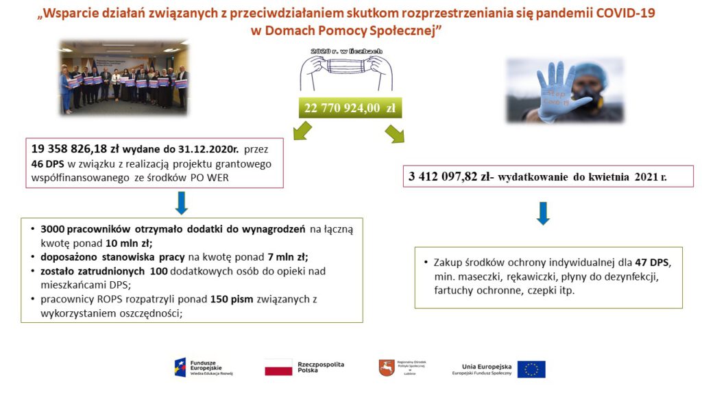 Podsumowanie działań w projekcie „Wsparcie działań zwianych z przeciwdziałaniem skutkom rozprzestrzeniania się pandemii COVID-19 w domach pomocy społecznej”! sty 28, 2021 | Aktualności, Projekt - COVID- 19 Domy Pomocy Społecznej