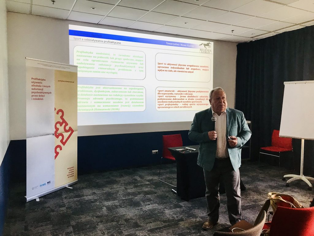 Przygotowane zostały dwa artykuły merytoryczne: Rozdział III. Dobre praktyki w upowszechnianiu programów na poziomie lokalnym oraz Rozdział VI. Finansowanie profilaktyki w gminnych programach. W dniach 14-15 maja 2024 r. w Warszawie odbyła się druga z pięciu planowanych konferencji, w której udział brali m.in. uczestnicy z województwa lubelskiego. Ekspert Wojewódzki ds. Informacji o Narkotykach i Narkomanii brał w niej czynny udział. W drugim dniu spotkania dr Justyna Syroka poprowadziła prelekcję nt. źródeł finansowania gminnych programów a następnie moderowała warsztat Okrągły stół – co sprawdza się w profilaktyce, a co szkodzi? Województwo lubelskie reprezentował również dr Ireneusz Siudem – Przewodniczący Towarzystwa Nowa Kuźnia, który wystąpił z prezentacją pt. Miejsce zajęć sportowych w profilaktyce.