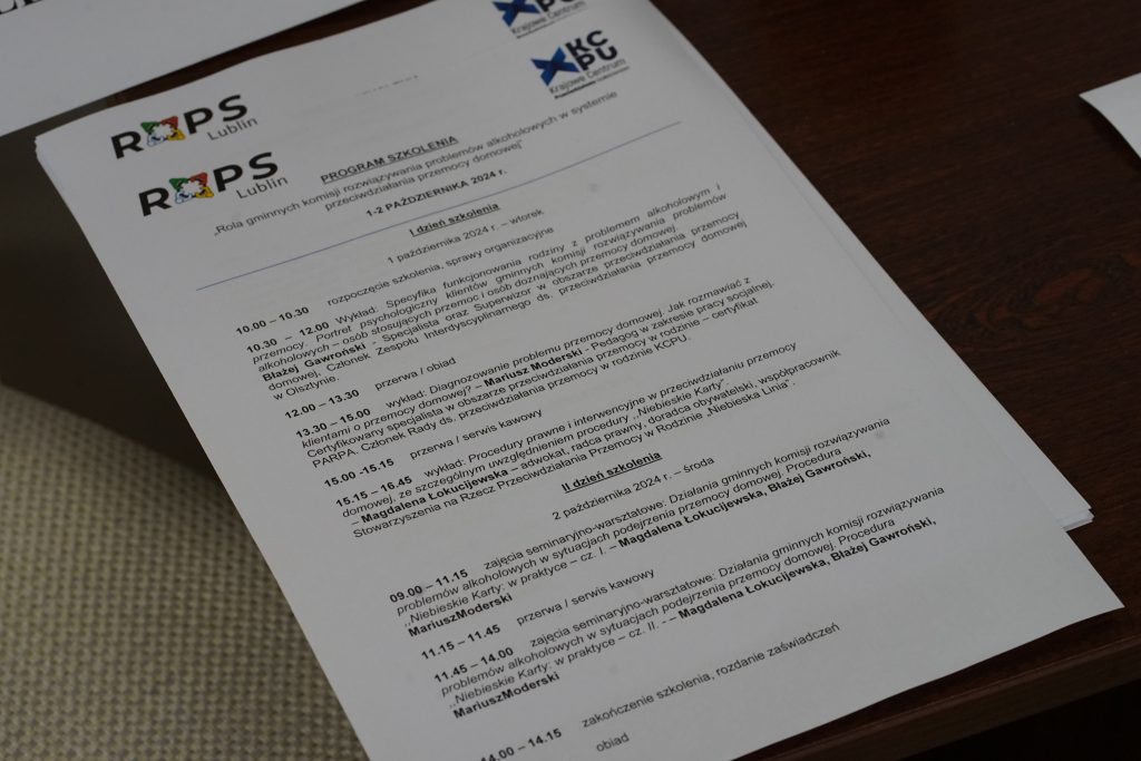 Regionalny Ośrodek Polityki Społecznej w Lublinie we współpracy z Krajowym Centrum Przeciwdziałania Uzależnieniom zorganizował w dniach 1-2 października szkolenie pt.: „Rola gminnych komisji rozwiązywania problemów alkoholowych w systemie przeciwdziałania przemocy domowej”. Szkolenie miało na celu podniesienie kompetencji członków gminnych komisji rozwiązywania problemów alkoholowych w zakresie problematyki przemocy domowej w szczególności w świetle zmian w ustawie o przeciwdziałaniu przemocy domowej.