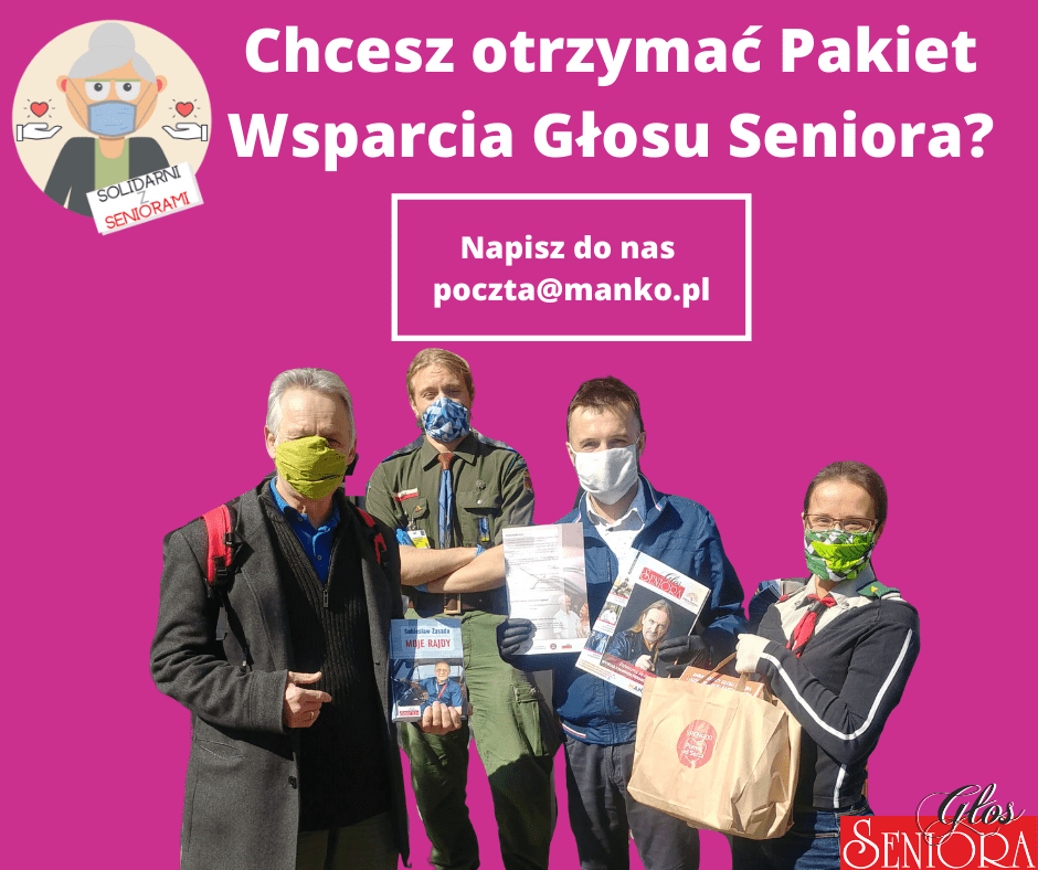 W związku z faktem, iż tylko do 25% seniorów jesteśmy w stanie dotrzeć kanałami on-line, a izolacja społeczna i odcięcie od świata jest olbrzymim zagrożeniem dla życia i zdrowia seniorów postanowiliśmy wysyłać do seniorów pocztą Pakiety Wsparcia. Mają one dotrzeć bezpośrednio do domu seniora lub do organizacji i gmin, które deklarują ich redystrybucję bezpośrednio do swoich seniorów. Pakiet aktywizująco-edukacyjny zawiera m.in. Ogólnopolski Magazyn Głos Seniora, książkę naszego ambasadora Mistrza Sobiesława Zasady, maseczkę ochronną, środki higieniczne SENI oraz materiały edukacyjne m.in. Niezbędnik Seniora od MRPiPS, informator dot. praw pacjenta oraz ostrzeżenia przed oszustwami.