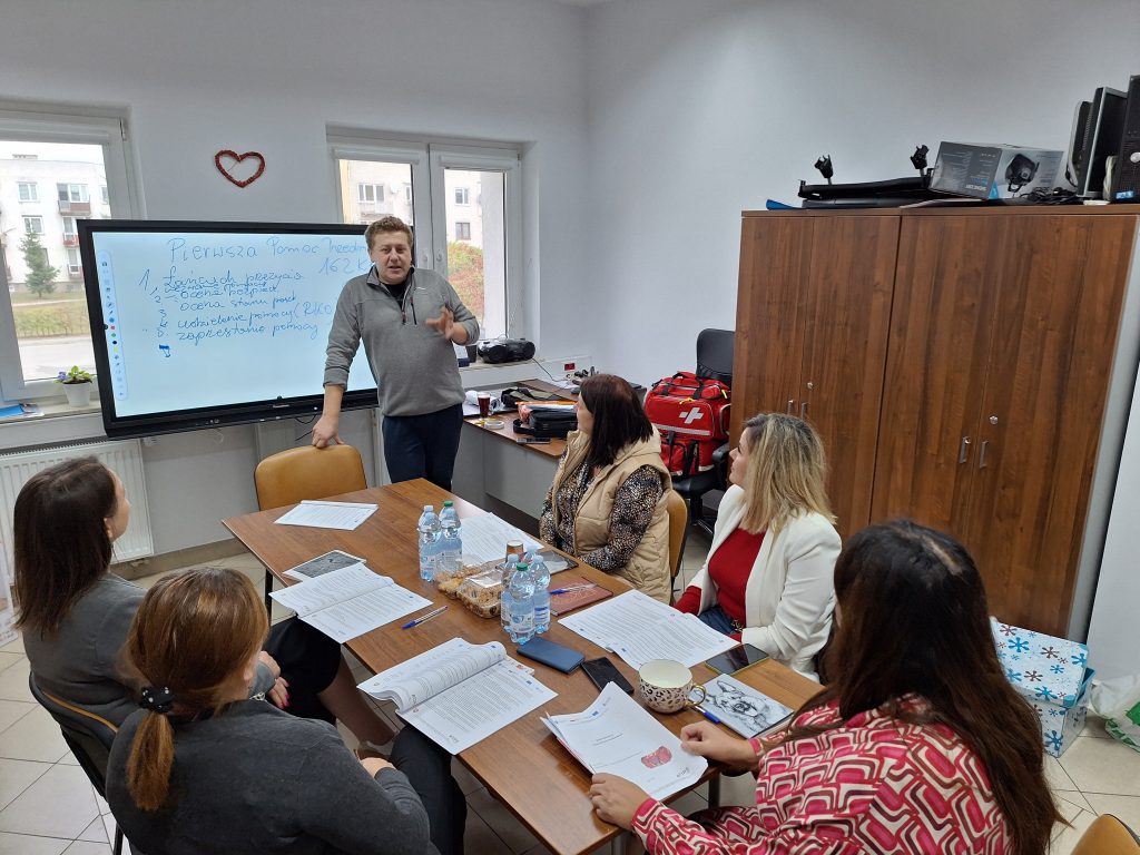 Regionalny Ośrodek Polityki Społecznej w Lublinie realizuje projekt partnerski pn. „Polityka Senioralna EFS+” w ramach Programu Fundusze Europejskie dla Lubelskiego 2021-2027 współfinansowanego ze środków Europejskiego Funduszu Społecznego Plus w ramach Działania 8.5 Usługi społeczne Priorytetu VIII Zwiększenie Spójności Społecznej Programu Fundusze Europejskie dla Lubelskiego 2021-2027. Ruszył kolejny etap w realizacji projektu „Polityka Senioralna EFS+”; szkolenia dla kadry i osób świadczących usługi społeczne. W dniu 7 października 2024r. w Wisznicach odbyło się szkolenie z Pierwszej Pomocy Przedmedycznej dla osób, które będą wykonywały usługi w ramach usług sąsiedzkich.