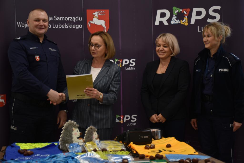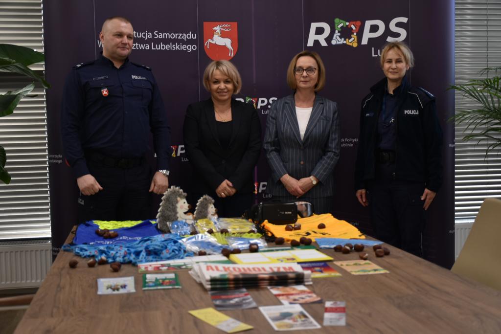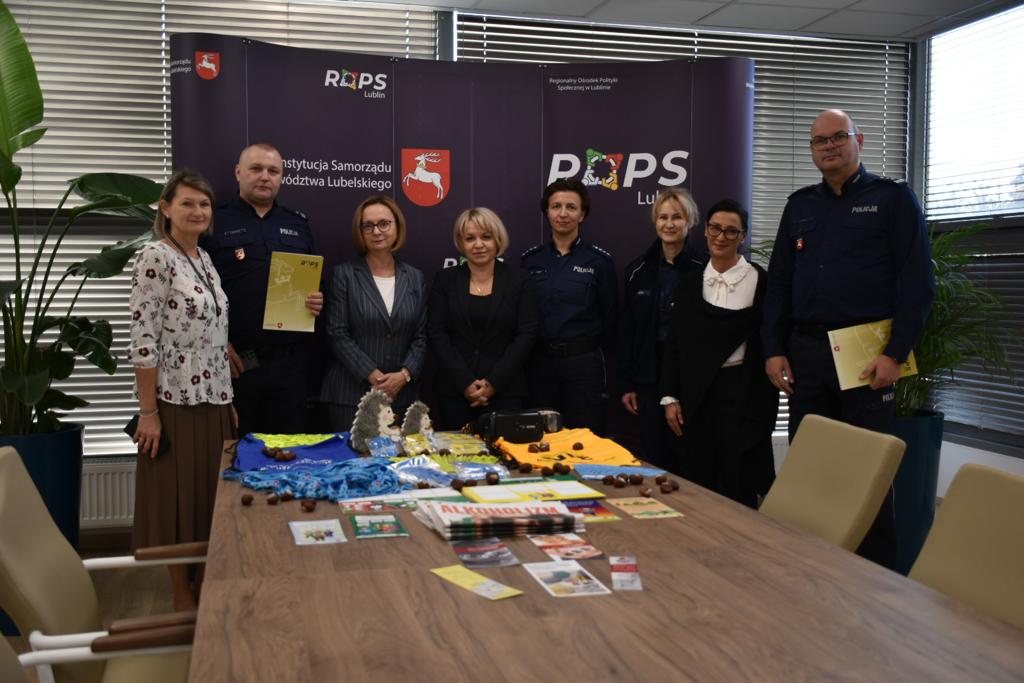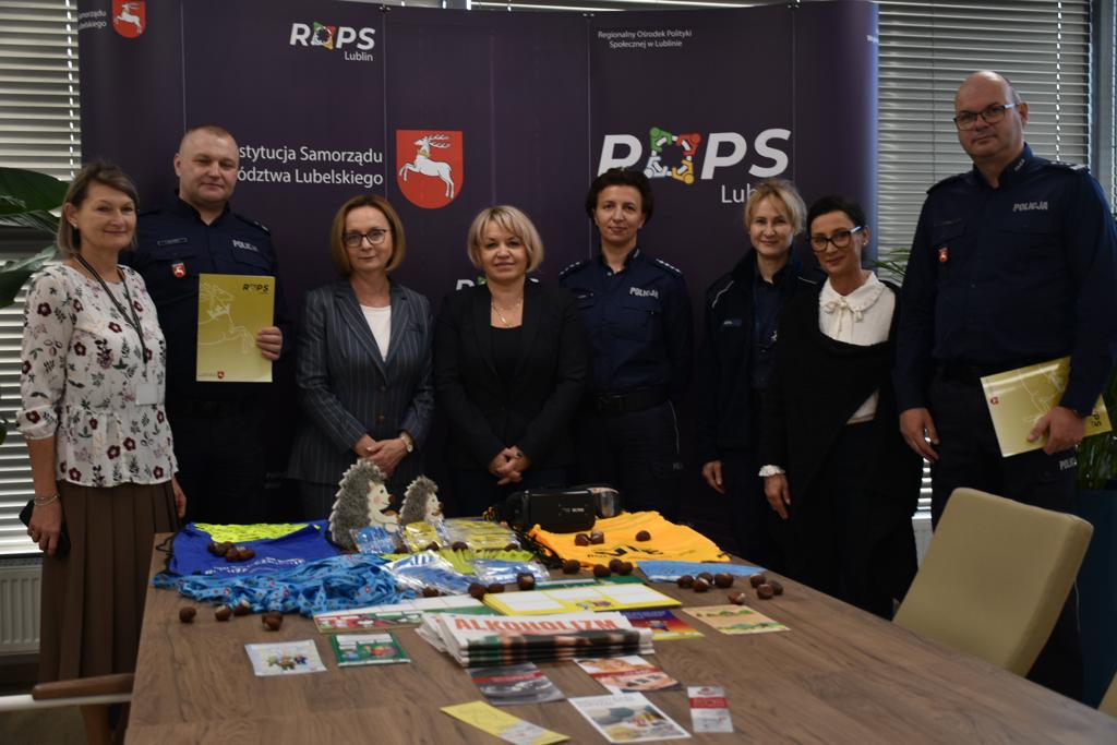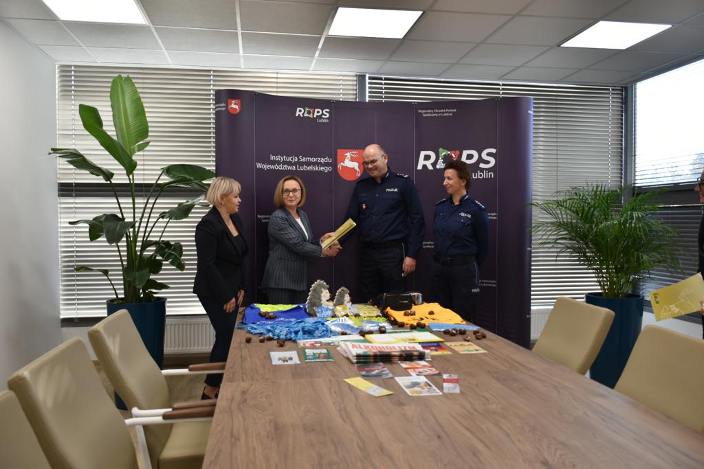 W dniu 18 października 2023 roku w Regionalnym Ośrodku Polityki Społecznej w Lublinie przy ulicy Diamentowej 2 odbyło się uroczyste spotkanie podczas, którego nastąpiło przekazanie materiałów profilaktyczno-edukacyjnych zakupionych przez Województwo Lubelskie za pośrednictwem Regionalnego Ośrodka Polityki Społecznej w Lublinie dla Komendy Miejskiej Policji w Lublinie oraz Komendy Powiatowej Policji w Kraśniku w ramach wspólnej inicjatywy polegającej na realizacji kampanii profilaktycznych.