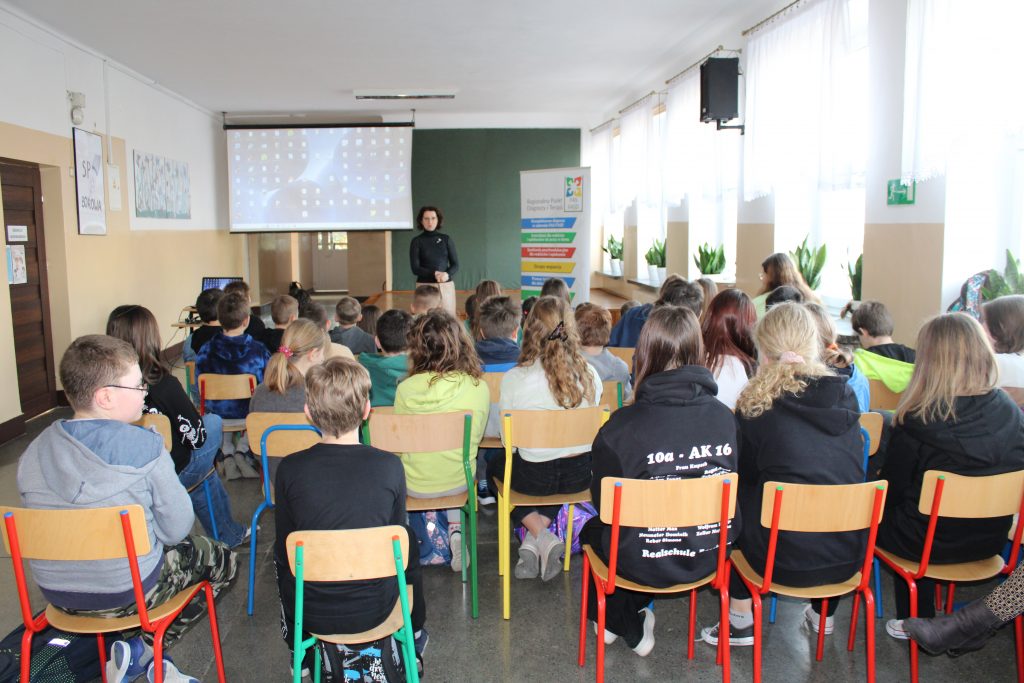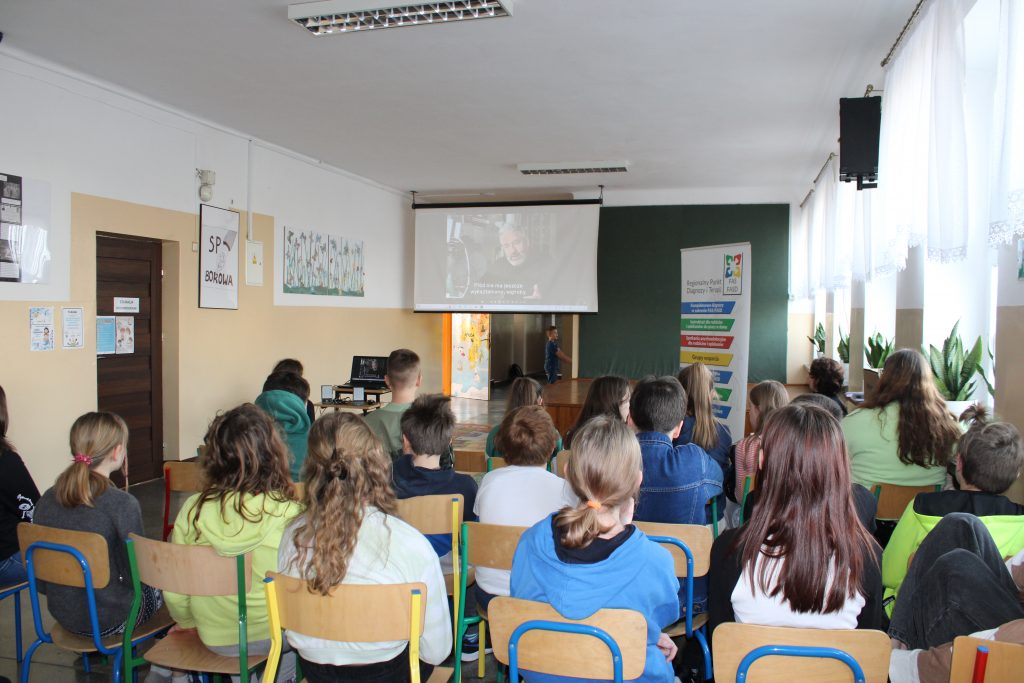 Uczniowie Szkoły Podstawowej w Borowej podczas prelekcji