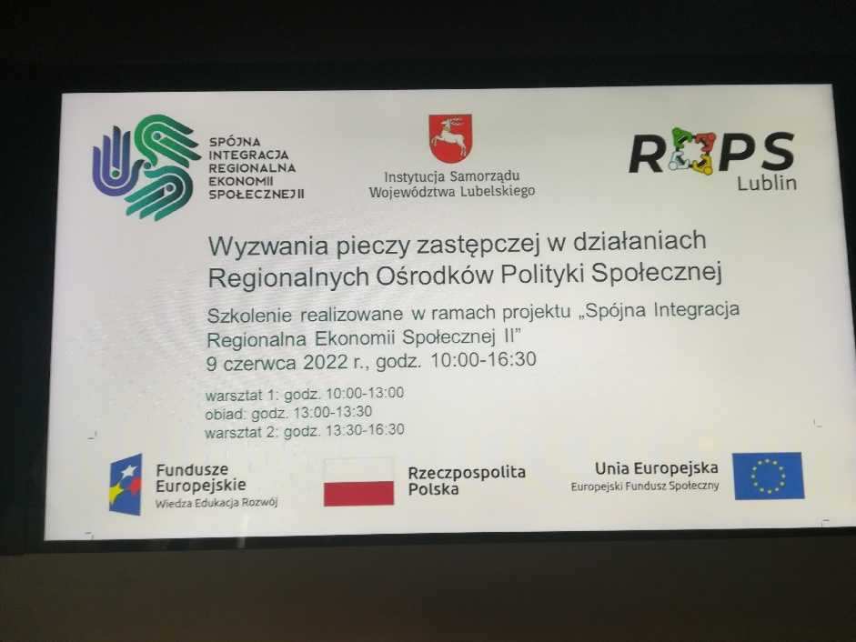 Ogólnopolski Związek Rewizyjny Spółdzielni Socjalnych w ramach projektu „Spójna Integracja Regionalna Ekonomii Społecznej II” zorganizował w dniu 9 czerwca 2022 r. we współpracy z Regionalnym Ośrodkiem Polityki Społecznej w Lublinie dla przedstawicieli Regionalnych Ośrodków Polityki Społecznej warsztaty pt. „Wyzwania pieczy zastępczej w działaniach ROPS”.
