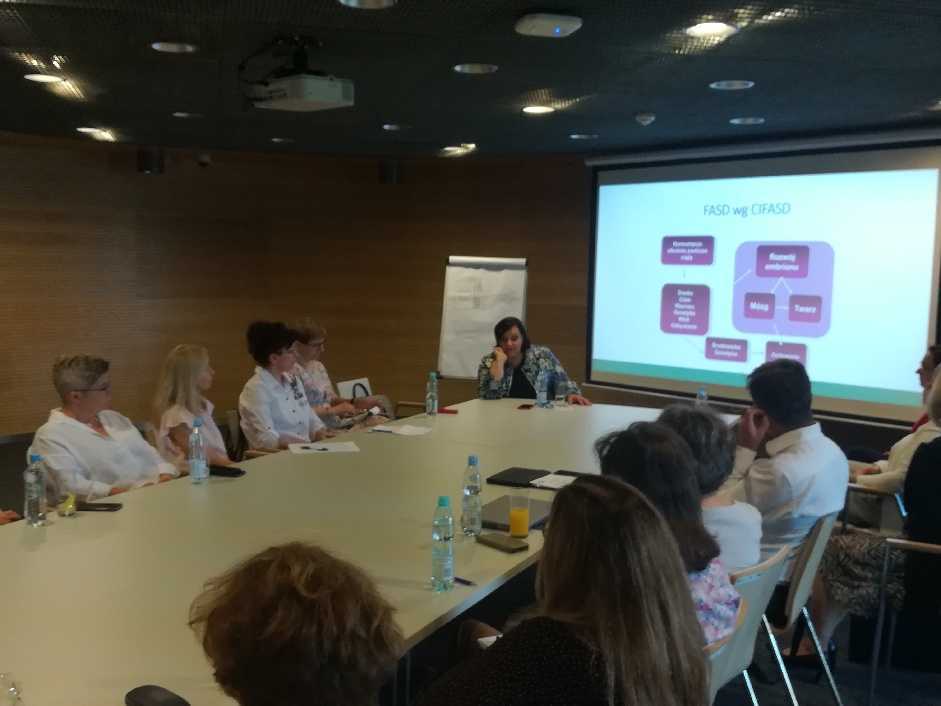 - Warsztat 1. FASD – epidemiologia i etiologia syndromu FASD (warsztat poprowadziła dr Teresa Jadczak-Szumiło, psycholog, pedagog, dr nauk społecznych w zakresie Psychologii Klinicznej, trener Polskiego Towarzystwa Psychologicznego II stopnia, certyfikowany specjalista ds. przemocy).